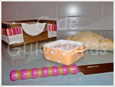 - Noutro recipiente, e usando a varinha mágica, triturar o pão com um dente de alho e com os pés dos cogumelos reservados.